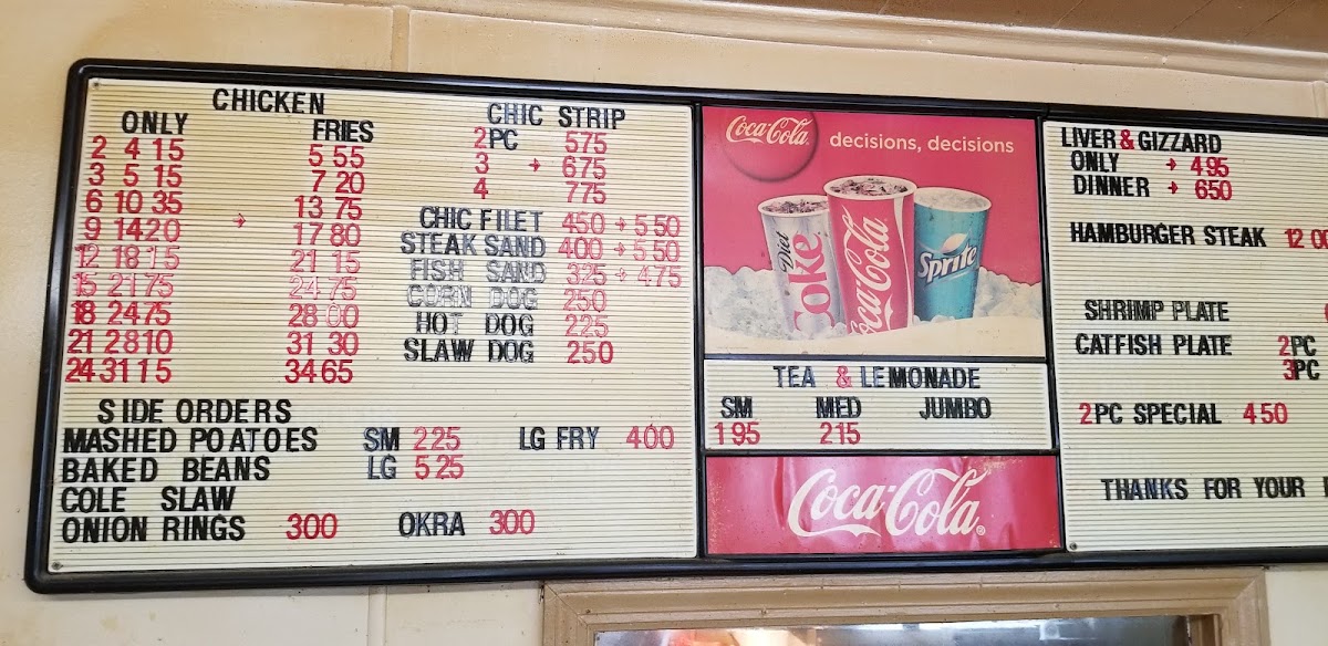 Whether you’re stopping by for a quick lunch or craving something to enjoy on-the-go, the menu features highlights like crispy chicken wings and a flavorful catfish filet sandwich, which stand out as popular choices. Alongside these, you can find a variety of simple sides such as baked beans, coleslaw, fries, and fried okra to complement your meal.